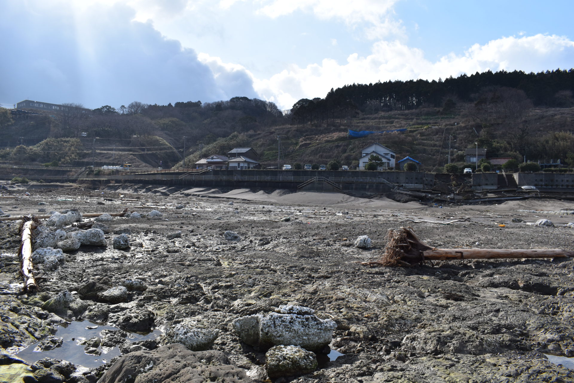 | 説明 | 隆起した岩礁より南側を撮影。大きな流木が複数みられる |