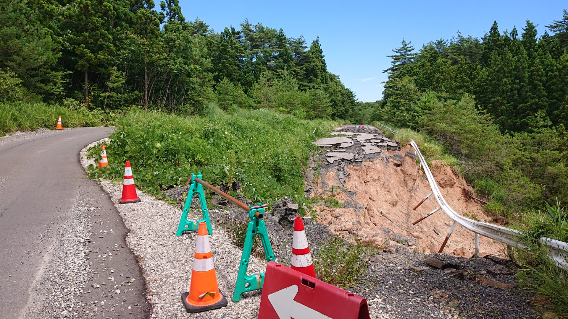 | 説明 | 道路が崩落し、う回路通行が続いている状況 |