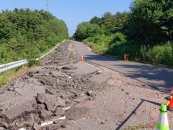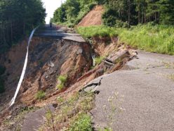 崩落しう回路通行となっている道路(1)