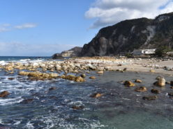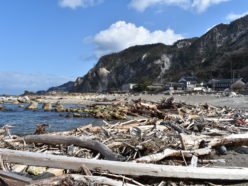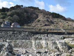 輪島市 吉浦の隆起海岸に流れ込んだ土砂(3)