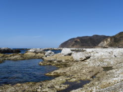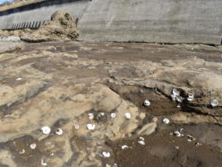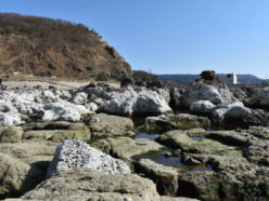 鹿磯の隆起海岸でみられたオオヘビガイの死骸